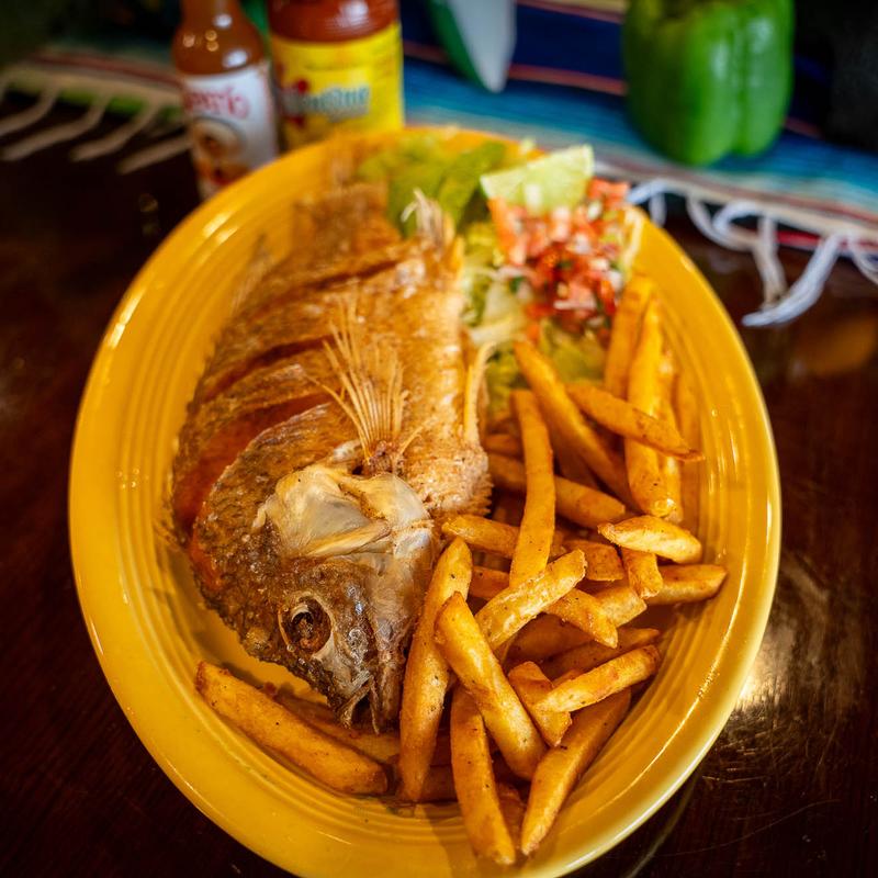 Ground Beef or Shredded Chicken $12.50 | Steak $13.50 • Stuffed flour tortilla deep-fried and garnished with lettuce, tomatoes, guacamole and sour cream. Served with rice and beans.