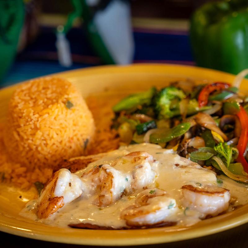 Steak or Chicken $17.95 | Shrimp $18.95 | Steak, Chicken & Shrimp $19.95 • Made with our special sauce, grilled cactus, chorizo, cambray onions, and fresh cheese. Served with rice and beans, salad and tortillas.